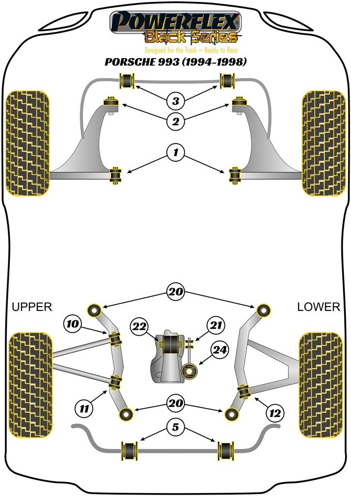 POWERFLEX Black Series bushes are manufactured using our Black 95 Shore A compound to provide maximum control of chassis geometry. They are designed for the Track, ready to Race and are engineered to be the best. This compound can be up to 80% more resistant to load than standard rubber and 25% stiffer than our purple performance material. If your requirements are purely for the ultimate in handling and chassis performance then Powerflex Black Series are unique, offering the most precise and accurate alignment for your chassis.