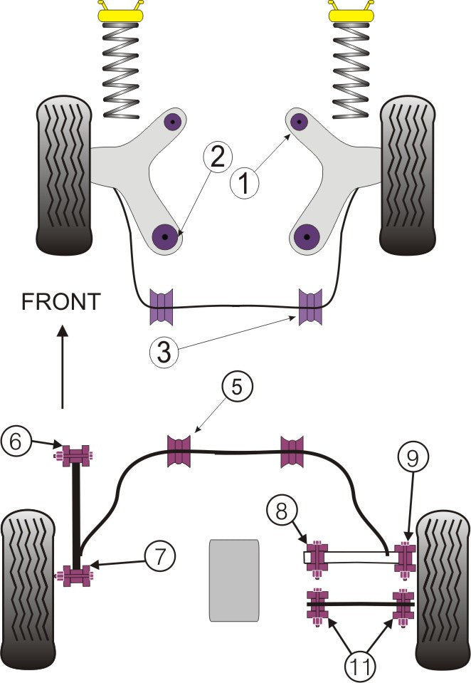 POWERFLEX Road Series bushes improve your cars’ road holding and chassis performance by controlling the amount of unwanted flex in the suspension. This means the suspension is doing what it is supposed to. It means your tyres have greater contact with the road at all times, therefore, improving safety and performance. Correctly formulated polyurethane is as good if not better at noise, vibration and harshness suppression when compared to worn rubber. Our Road bushes offer Prolonged tyre life, Improved performance, Increase safety, Greater cost-effectiveness.
